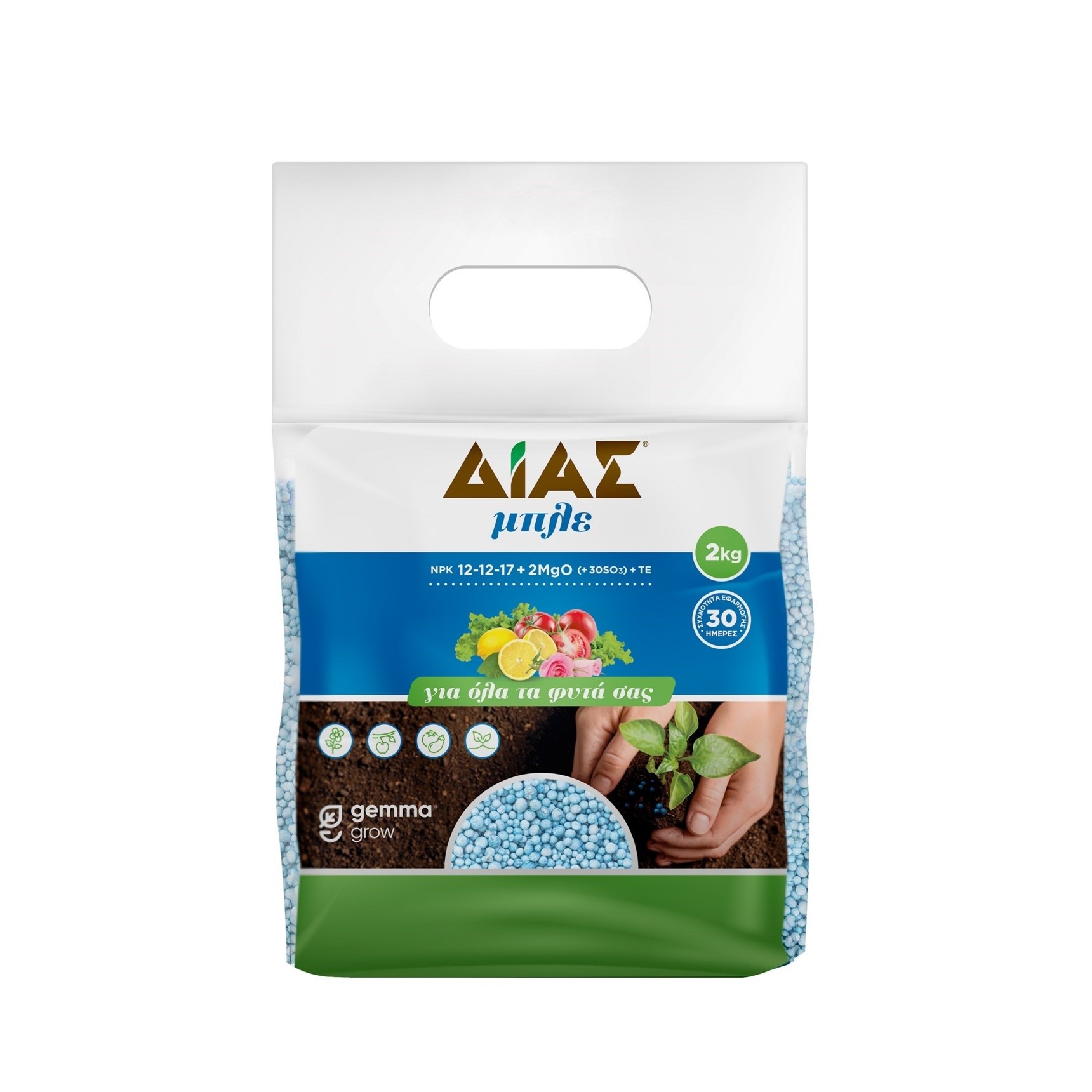 Άζωτο 12%, Φώσφορος 12%, Κάλιο 17%, Μαγνήσιο 2%, Θείο 30% και Ιχνοστοιχεία.
